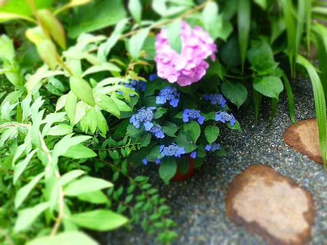 いすからも、庭が見えるテーブルの席からは今一番あじさいが綺麗に咲き乱れ素敵です。