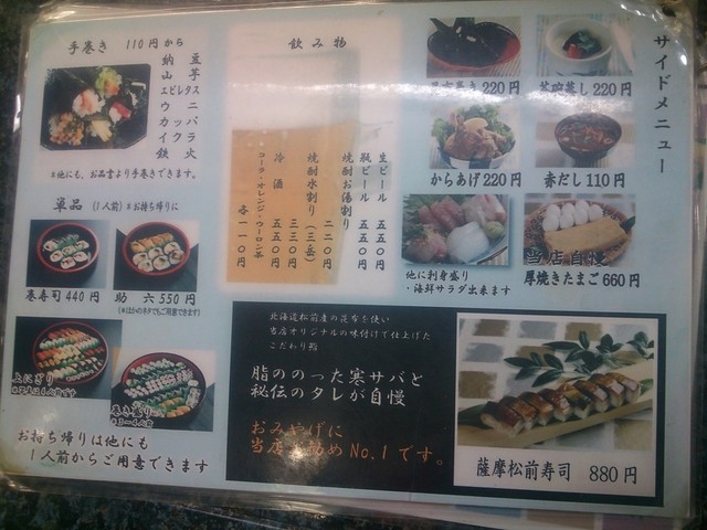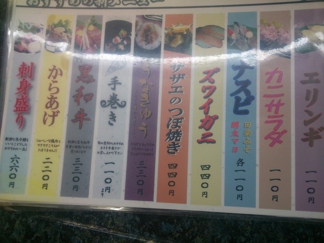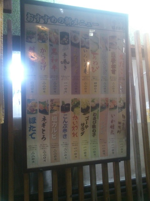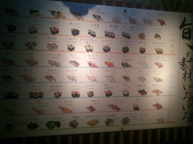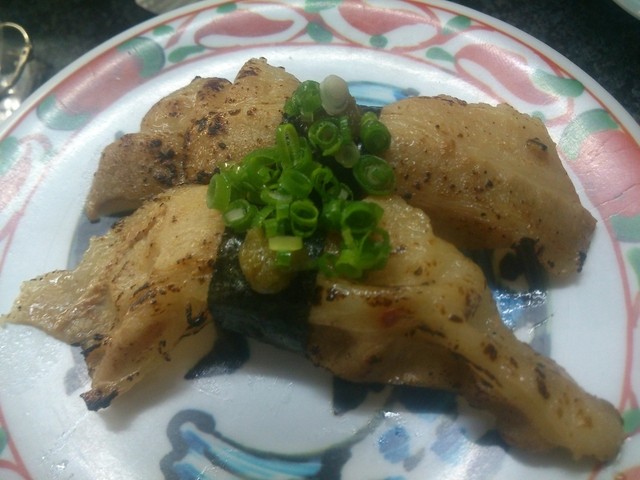 今回はカンパチ(220円)、あなご(110円)、イカ(110円)、塩カルビ(220円)、うなぎ(330円)、玉子(110円)などを頂きました。