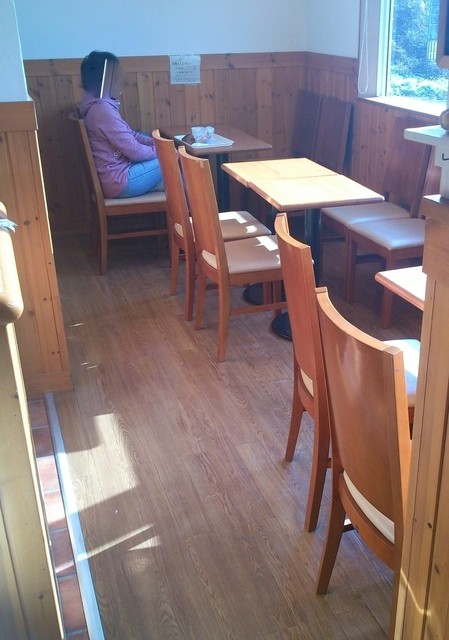 店内でパンを食べられるスペースがあり、小さいカップ1杯だけながら珈琲の無料サービスがあるのもうれしい。