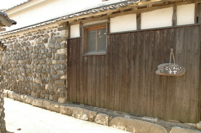 港から山方面に歩いて約10分。島を代表する外壁「練塀」が続く先に店があります。
