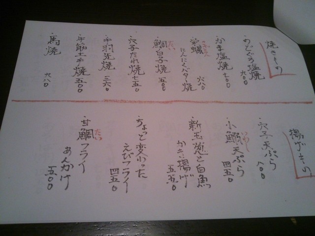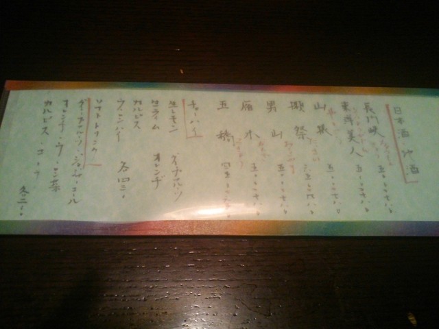 今回は「刺し盛り」(値段を忘れました…)や「菜の花菜種和え」(300円)などを頂きました。
