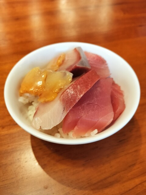 ごはんを持ってきて、上に刺身を乗せて海鮮丼にすることもできる。