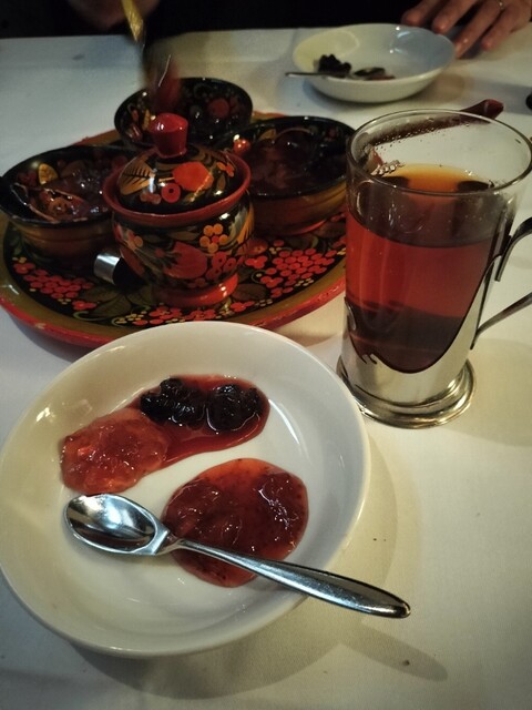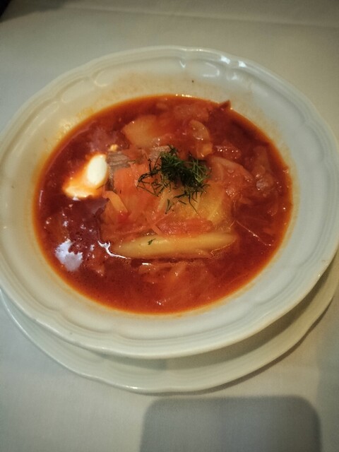 コースのジョージアセットとスンガリーコースを注文。それぞれシュクメルリやボルシチなど基本のロシア料理を楽しめるメニューになっていて良い。