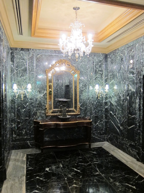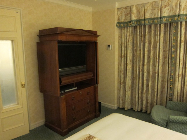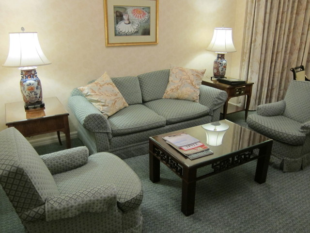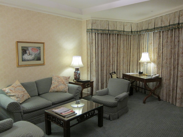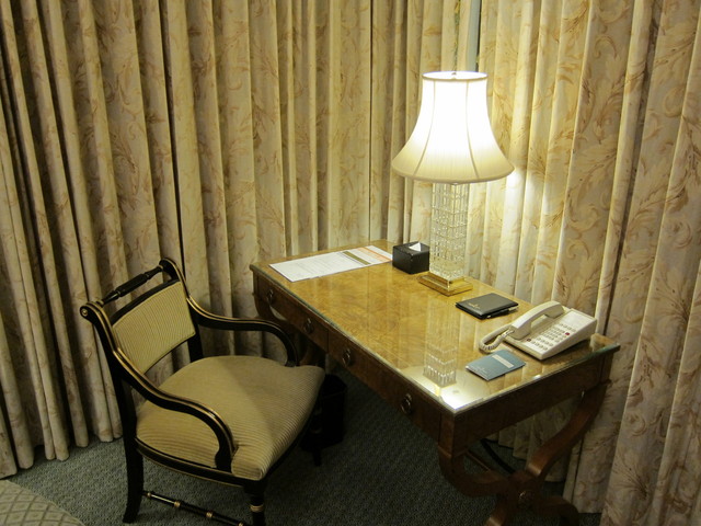 家具は相変わらず大阪のリッツと同じようにマホガニーの上にガラス板。
