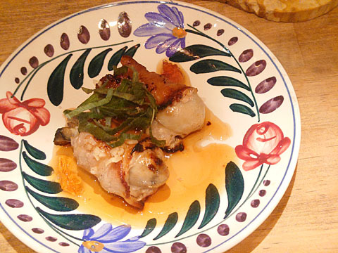 冬の定番は牡蠣の豚バラ巻きソテー。