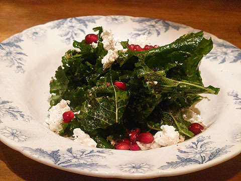 ケールとザクロ、カッテージチーズのサラダはクリスマスカラー。