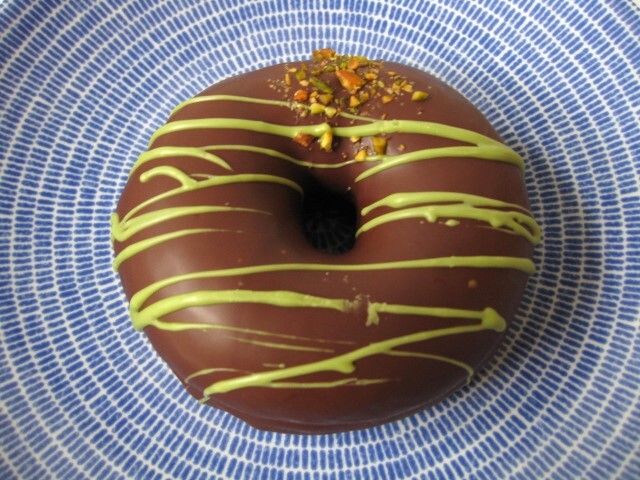 全粒粉とライ麦入りのドーナツにピスタチオチョコをコーティング