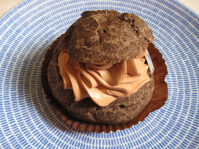 チョコレートのシュー生地にチョコホイップクリームと生クリームのWクリーム