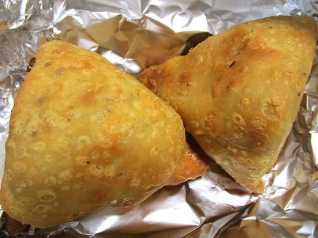 カリッと揚がった皮生地が香ばしい、大きなサモサ。