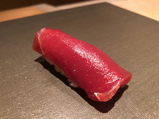 そして頂く。表面がうっすらと焼かれ、中は柔らか。そして赤酢のシャリとベストマッチ。この一体感がたまらなく美味しい。