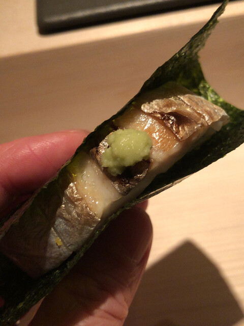 皮目が香ばしく、江戸前の海苔とベストマッチ。ずっと食べていたい味わいです。
