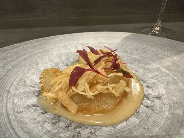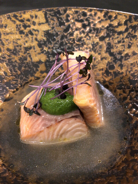 池見シェフが言われてた通り、鰊の食感が強く食べ応え十二分。肝の旨さとアビオスの味わいがマッチしてました。おそらくこのメニューは都内の有名店でも出せない味わいだと思います。