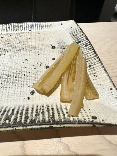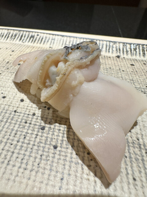 そして白いか。甘さを引き出すとともに、白いかを何枚も薄く切って重ね、さらに隠し包丁を入れているので柔らかな食感と甘味が凝縮されていました。こんないかの寿司は食べた事ないかも。