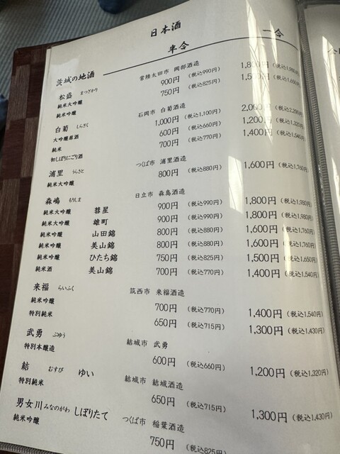 メニューを見てわかるのは茨城のお酒のラインナップが素晴らしい事。
