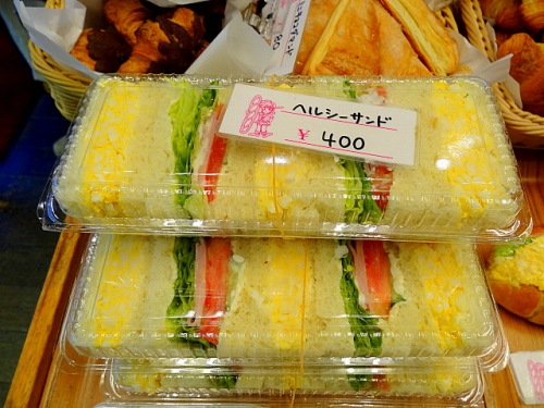 タマゴサンドに至っては、卵が多すぎてパンが湾曲してます〜。