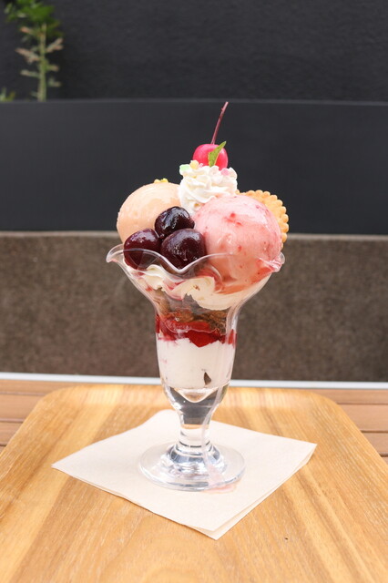 春らしいピンク色をたっぷり詰め込んだかわいいパフェ。ごろっと乗ったチェリーや、さっぱり滑らかなさくらんぼアイスに、アクセントのサワークリームがとっても合います!