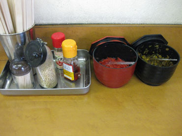 テーブルにはもちろん、紅しょうがと高菜。