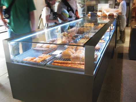 パンは、お店の人に言うと取ってくれて、それをレジに持って行って会計という方式。