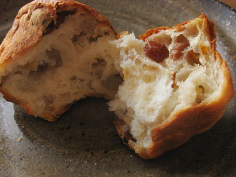 中にサルタナレーズンと伊予柑ピールが練り込まれているもの。