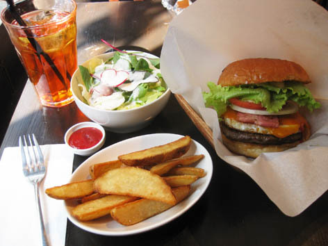毎週恒例歯医者後のランチ。この日は、近いのにじっくりと散策した事のない街高円寺に行きます。食べログで検索して、行きたい所は決めてました。ザッツバーガーカフェあれっ、看板が違ってるBAKECROWNSCAFEだって。なんで、なんで?でも、メニューは似てるんだけど・・・お花が送られて来ているから、新装開店なのか、経営者がかわったのか。店内はイイ感じにユーズド感を出しているので、新装開店なのかどうかはわからない。さほど混んでいなかったので、窓際席に座る。窓際席好きなの〜。ランチタイムだったのでCセット(ポテト・ドリンク・サラダ)を注文。そうこうしているうちに、新店があることに気が付いた客が続々と入ってきた。高円寺の人は新しモノ好きだね。ポテトは細いの(マック風)と太いの(皮付き)を選べます。ドレッシングも、シーザーとサウザンを選べます。そして、程なくして、来た来た、佐世保バーガー。佐世保バーガーは去年佐世保で食べて以来のご無沙汰。(たいしたご無沙汰ではないか)でも、初めて食べた佐世保バーガーは実は中野五差路店に昔あったお店。6年以上前のことだったかな。多分ここの系列店の第一号店だったと思う。佐世保バーガー690円+Cセット450円=1,140円グルメバーガーにしては安くない?日曜日もランチセットをやってるのはいいね。しかも、ナイスビジュアルだ〜バンズに焼き跡が付いてる。普通に美味しい。具だくさんなのが佐世保バーガーならではだわ。店内は、一気に満席になって店員さんもアタフタ。料理が出てこないと軽く切れる客。危なかった〜。早めに入っていてよかったわ〜。