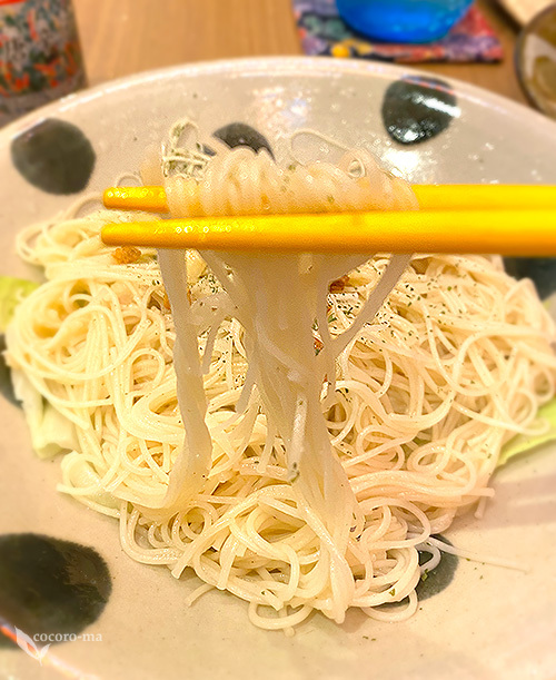 絶妙な茹で加減なので、素麺は細くてもしっかりコシが残っており、