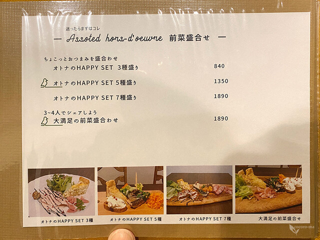 ひとり一皿ずつ「前菜の盛り合わせ(5種盛り)」をいただきました。