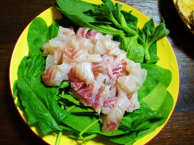 セイゴとほうれんそうのサラダ(ごまドレ)