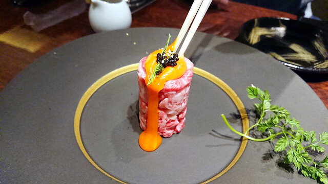 黒毛和牛焼肉 虎斑(TORAFU)★霜降り和牛とキャビアのユッケ