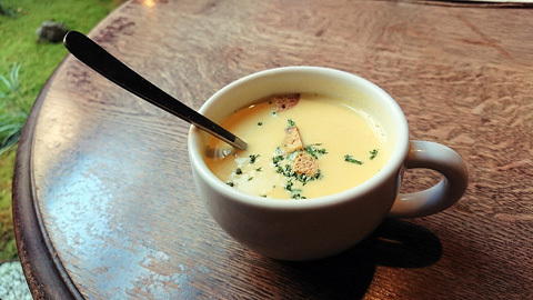 まずは、ランチにセットになっていた、かぼちゃのスープをいただきました。