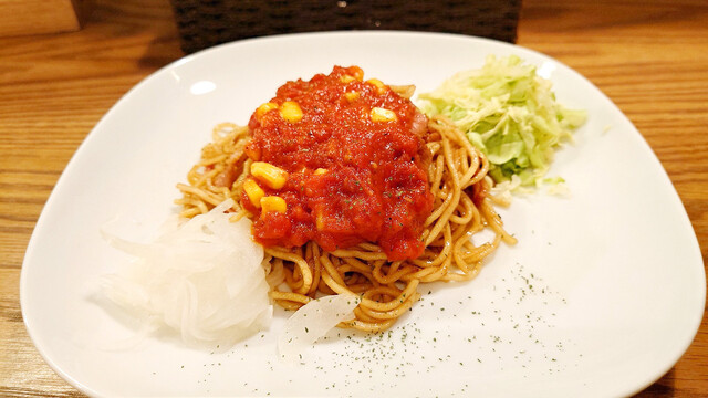 大皿にはたっぷりボリュームのパスタが盛り付けられていました。