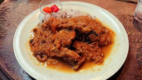 チキンの他にも、かぼちゃ、ナス、ブロッコリーなど、ごろっとしたサイズの野菜がたっぷりです。