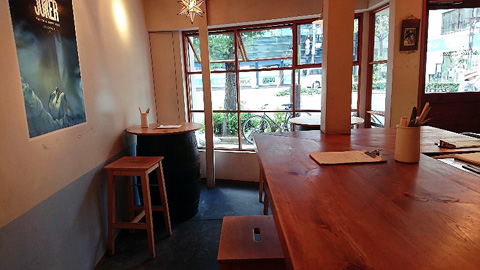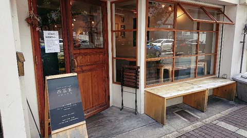 万寿寺通りと河原町通りが交差するあたりにお店があって、通りから店内の様子が伺えます。