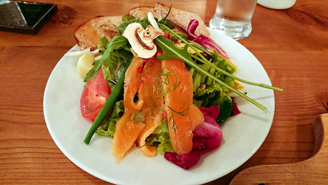 元田中にあるジェルメの全粒粉パンと一緒にサーモンマリネにかぶりつきました。
