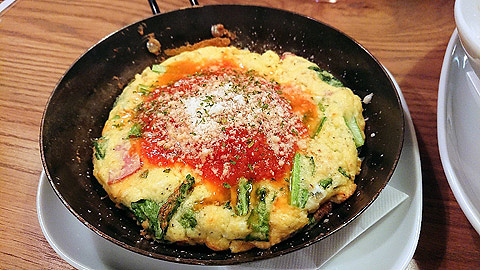 フライパンをお皿替わりにした、オムレツが登場しました。