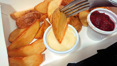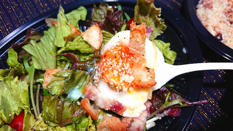 たっぷりのたまごに、新潟産のこごみ、ベーコンが入っていて、さらに、ケチャップがかけられていました。