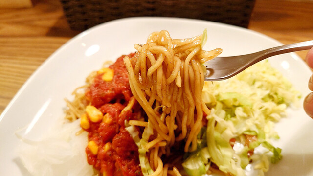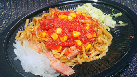 焼きそばとケチャップソースという、斬新な組み合わせです。