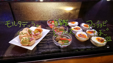 少しずついろんなお料理を食べることができ、一皿100円から200円程度です。
