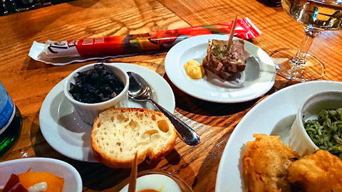 黒オリーブを使用したタプナードはワインと合いそうな味付けです。