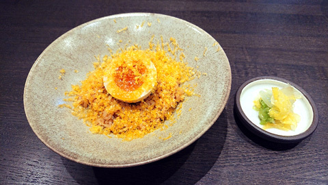 ごはんの上にふわっと乗っている黄色い粉末が斬新です。