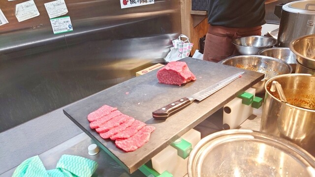 注文が入ってから、カウンター席のお客さんの前で肉を切ってくれるライブ感が特徴。