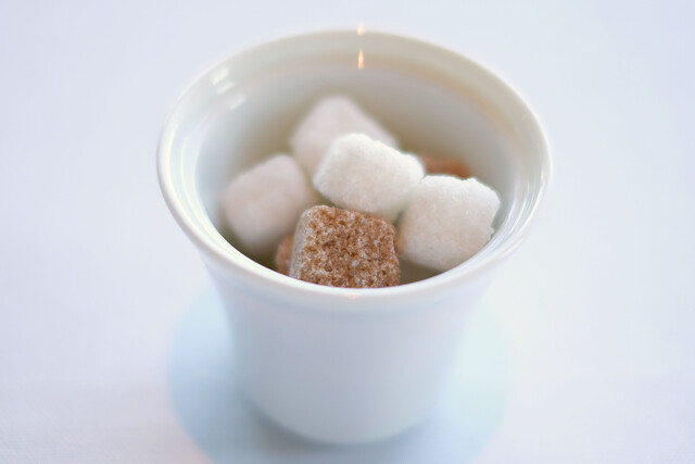 淡緑の林檎シャーベットをトッピングして提供されます。