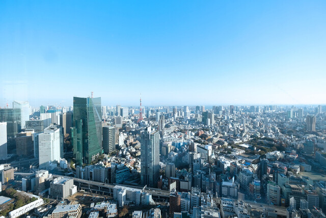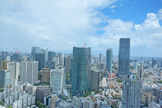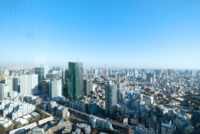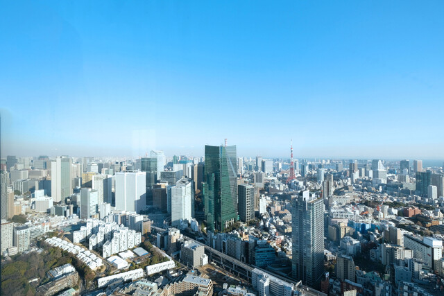 白とガラス張りを基調とし東京タワー、お台場などが一望できる絶景の眺望です。