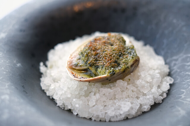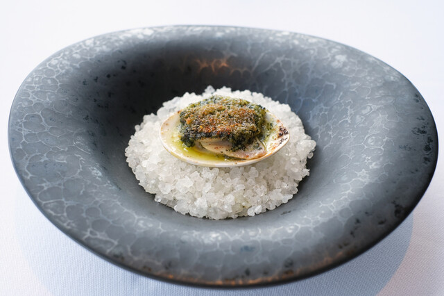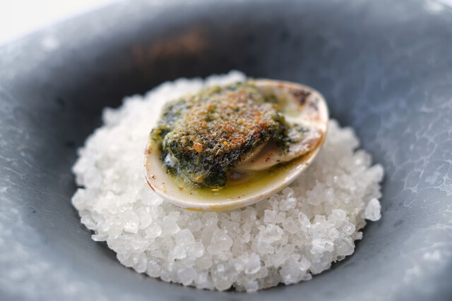 ハマグリにハーブと衣を付けたオーブンで焼きを