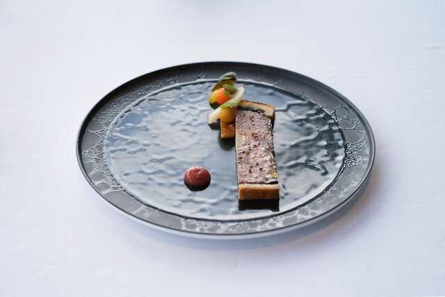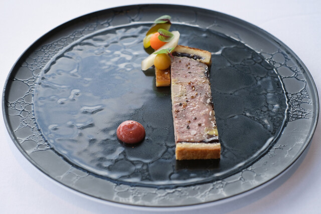ランチコース 19800円 のアグー豚レバーパテ 鴨肉ジュレ