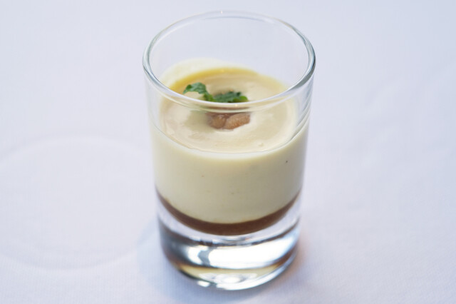 ランチコース 19800円 の温製コンソメ ポートワイン