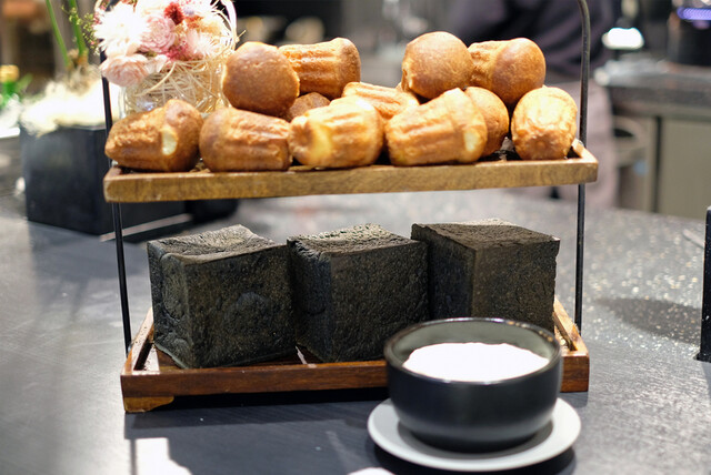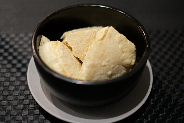 ランチコース 7865円 のブリオッシュ、きな粉のフランスパン、食パン