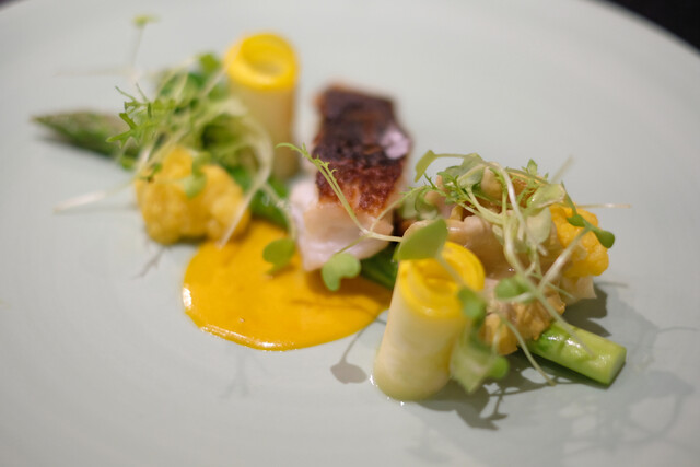 ランチコース 5940円 の長崎県産尾長鯛と春の山菜