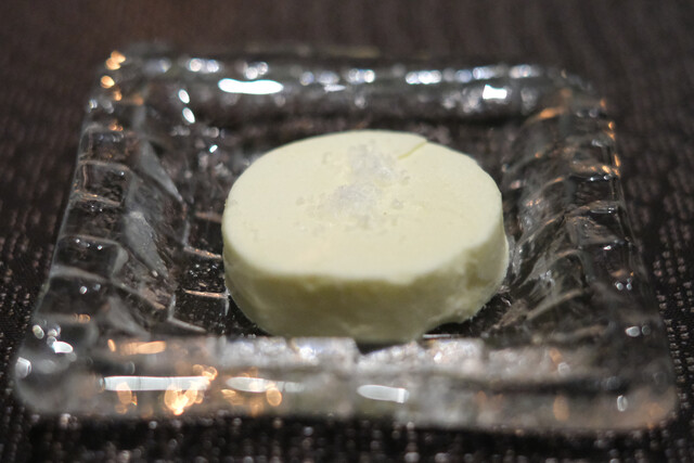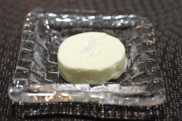 パン、アミューズ、前菜2品、メイン、デザート、カフェ、プティフールのコースです。