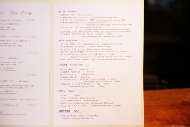 (アミューズ、前菜、パスタ、メイン、デザート、カフェ)