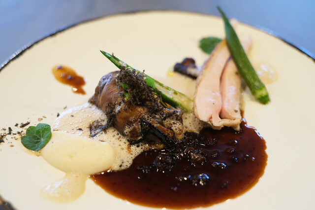 ランチコース 9680円 の秋田 比内地鶏 ソースモリーユ